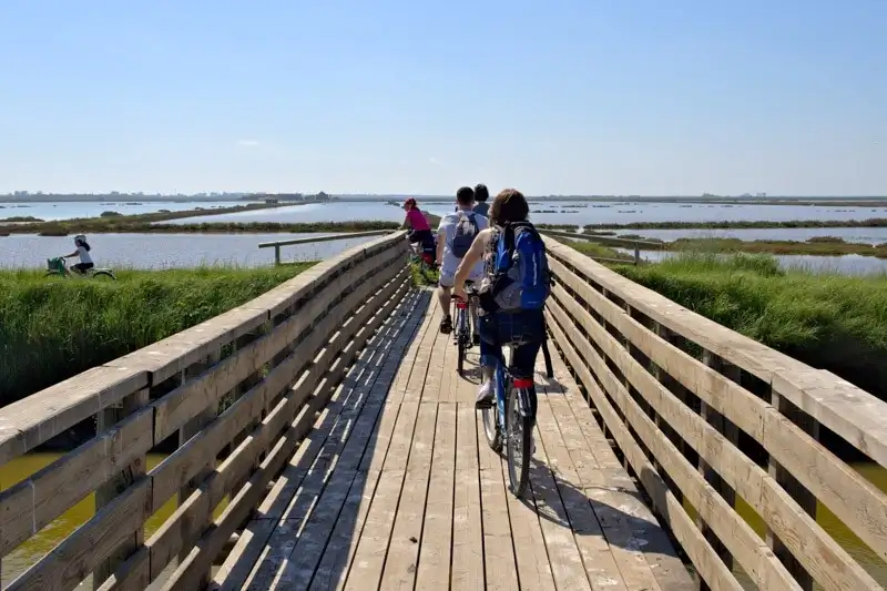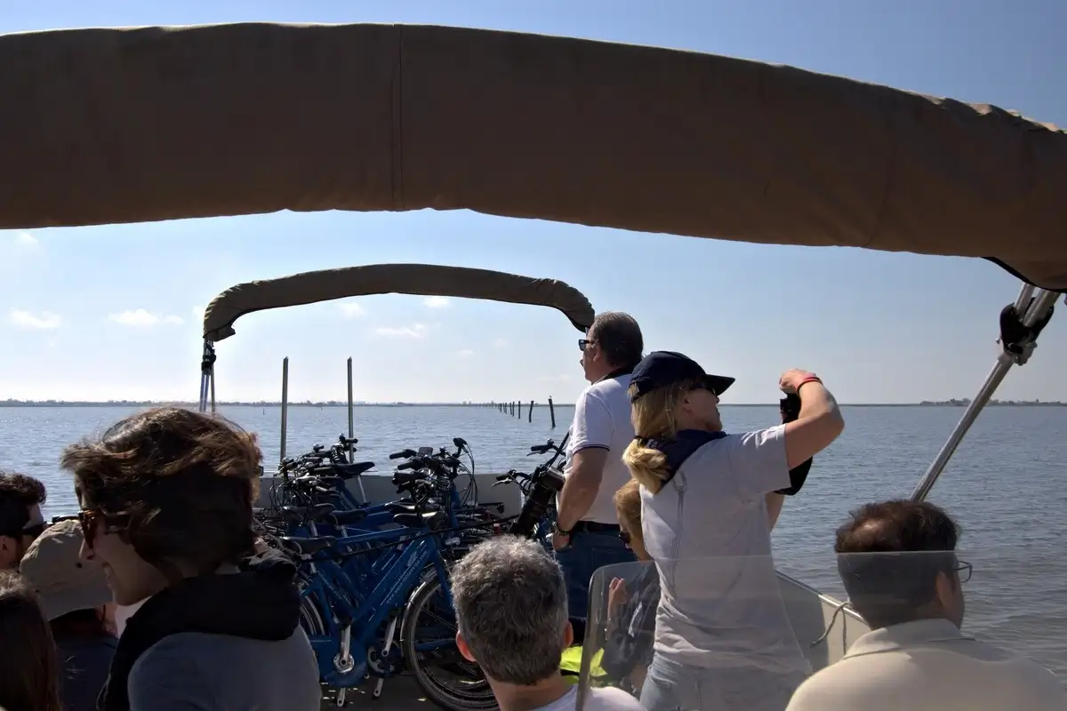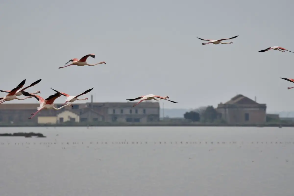 Saliremo a bordo di un'imbarcazione appositamente attrezzata, che accoglierà comodamente sia noi che le nostre biciclette e navigheremo, ascoltando storie e curiosità su questi luoghi unici, dove l'armonia tra uomo e natura ha creato un paesaggio di rara bellezza. Dopo una piacevole pausa caffè, torneremo in sella per esplorare sentieri nascosti, alla ricerca di scorci panoramici e siti privilegiati per ammirare l'avifauna, tra cui spiccano i suggestivi fenicotteri.
