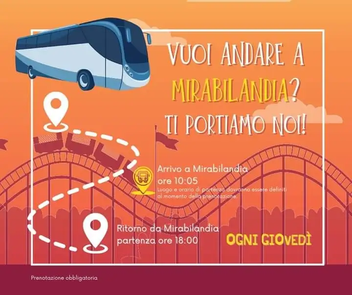 Servizio Bus andata e ritorno per Mirabilanda e tempo libero a disposizione per trascorrere l'intera giornata nel Parco di divertimenti più grande della riviera romagnola.