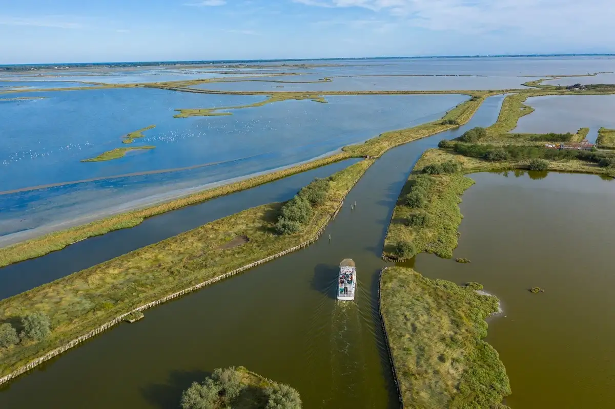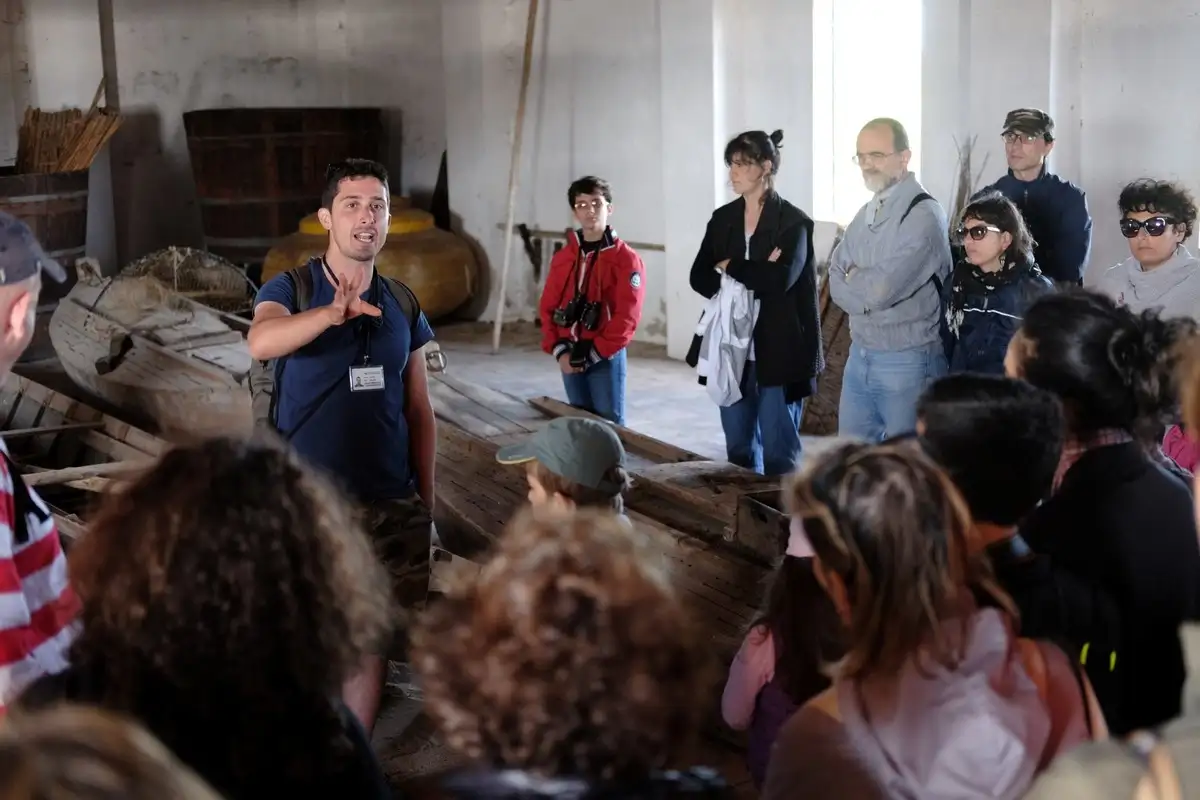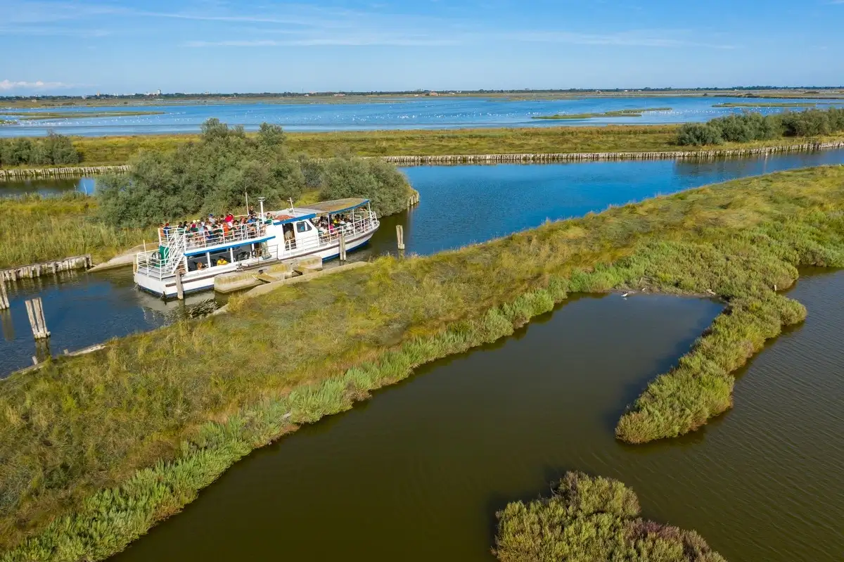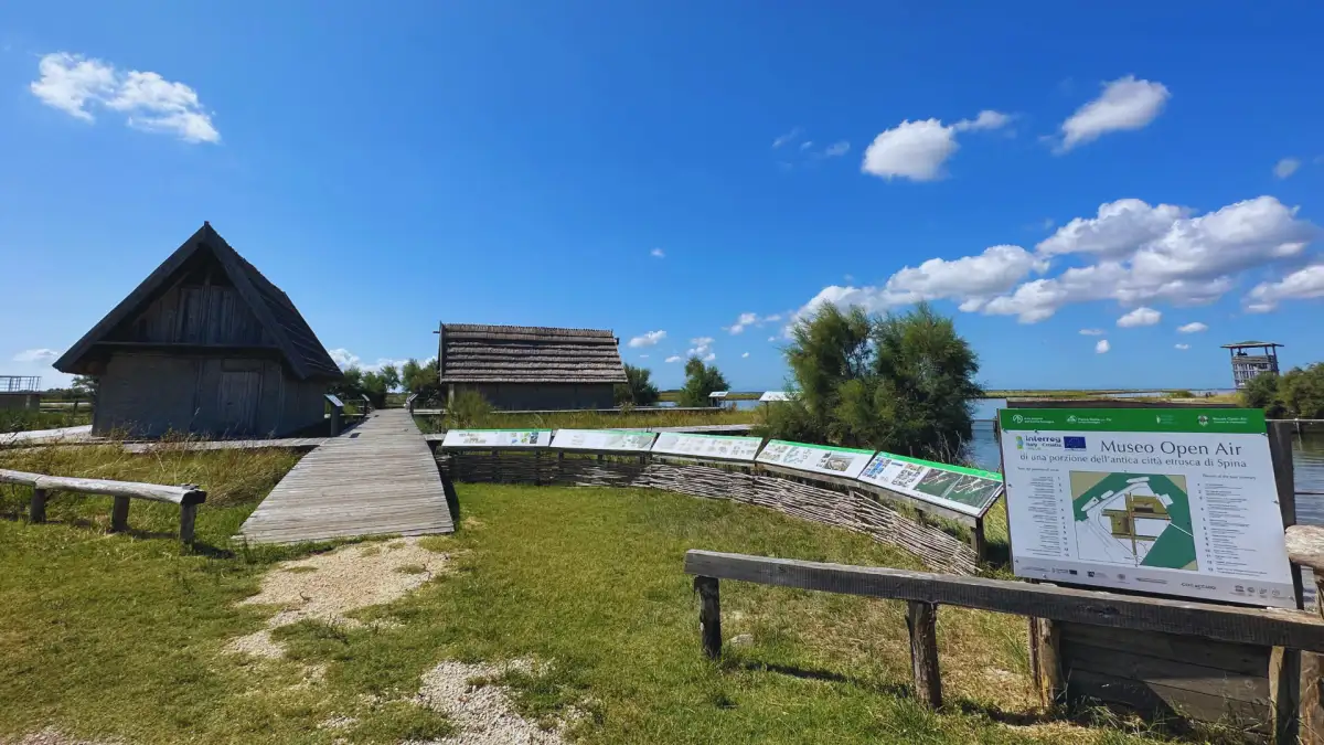 Il percorso inizia con la visita al nuovo Parco Archeologico Open Air che ospita la ricostruzione di due abitazioni dell'antica città etrusca di Spina per poi proseguire con una esclusiva escursione lungo i canali interni dello specchio vallivo per ammirare la bellezza di un'oasi unica e spettacolare, dove dimorano centinaia di specie di uccelli acquatici e una numerosa colonia di fenicotteri. La guida ambientale presente a bordo vi accompagnerà alla scoperta delle stazioni da pesca, gli antichi "casoni", custodi di usi e tradizioni di un tempo.