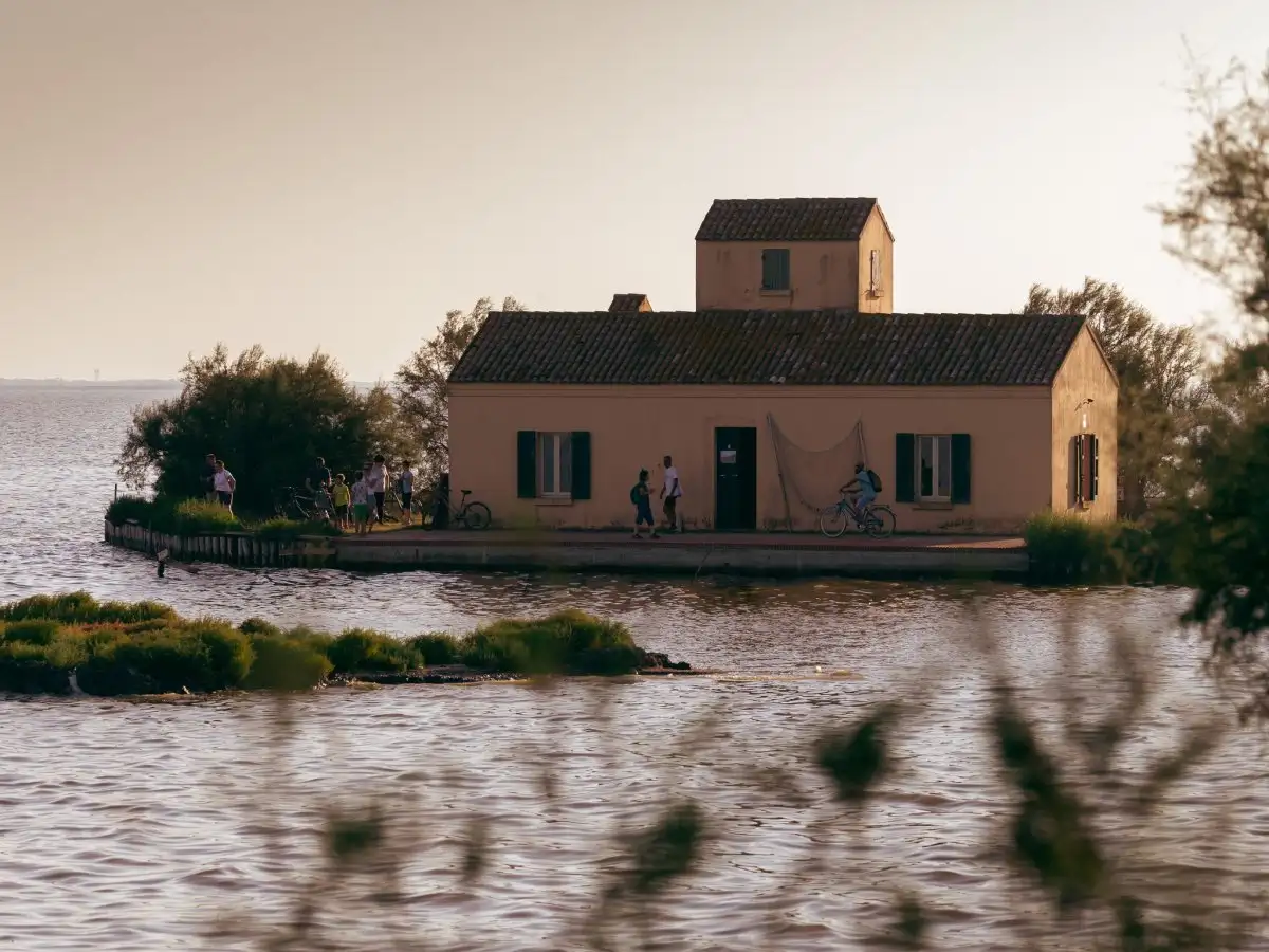 Una guida ci accompagnerà in un viaggio indietro nel tempo tra di luoghi chiave della storia comacchiese. Lasciandoci alle spalle il Ristorante Bettolino, in sella alle nostre biciclette raggiungeremo Casone Donnabona, dove scopriremo storie, aneddoti e superstizioni legati alla vita e al lavoro nelle Valli, degustando un piccolo aperitivo dai sapori tradizionali.