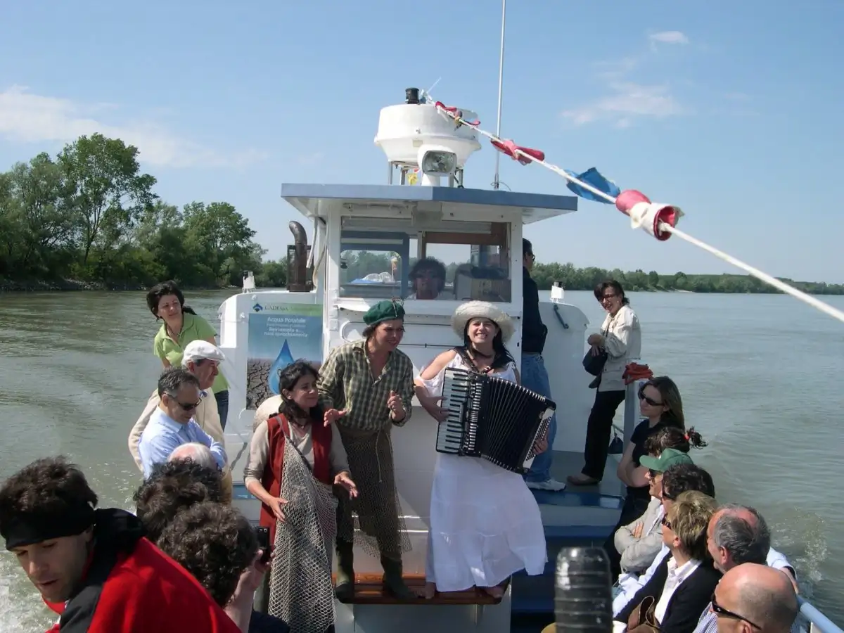 Escursione dalla nuova darsena di Ferrara al Po Grande, navigando sulle vie d’acqua che ricongiungono la città al grande fiume, che le diede origine. Uno spaccato insolito, un corridoio naturalistico, dove aironi, gruccioni e tartarughe vivono indisturbati, insieme a solitari pescatori. Passaggio attraverso la conca di Pontelagoscuro, sipario sulla maestosità del grande fiume e navigazione panoramica sul Po, costeggiando la spiaggia della Giarina o l’antica Isola Bianca.